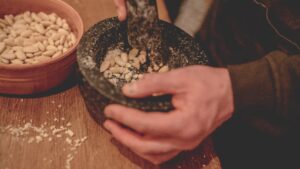 Together, we prepare the dishes for a three-course menu based on medieval recipes recorded in monasteries and at princely courts. The recipes are selected according to seasonal availability.